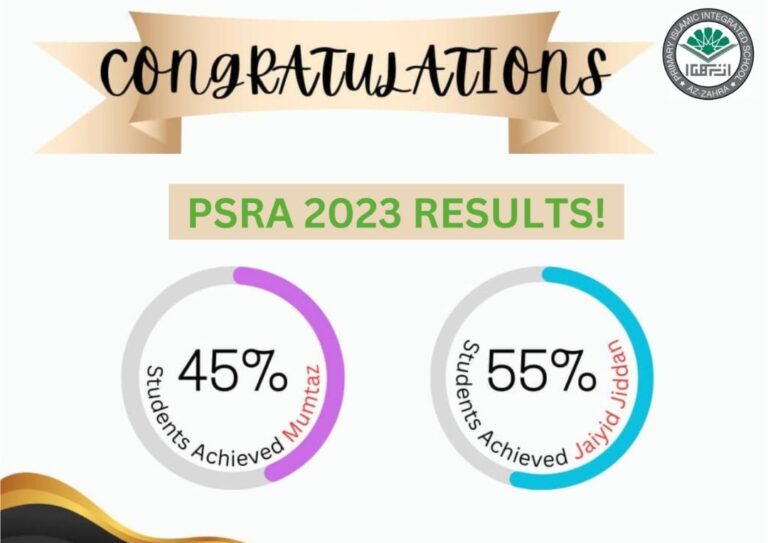 Our 2023 PSRA candidates proved their mettle and made us all proud with 100% result. 46% scored MUMTAZ while the remaining 54% achieved JAYYID JIDDAN.
